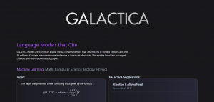 Galactica es un modelo de lenguaje avanzado desarrollado específicamente para gestionar y organizar conocimientos científicos. Similar en tamaño a GPT-3, Galactica cuenta con 120 mil millones de parámetros y está entrenado con un vasto corpus de información científica, que incluye más de 48 millones de artículos académicos, libros de texto, compuestos químicos y secuencias de proteínas. Su objetivo es ayudar a generar artículos científicos, resolver problemas matemáticos, escribir código, y citar adecuadamente trabajos de investigación.