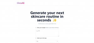 GlowAI es una herramienta impulsada por inteligencia artificial que ayuda a los usuarios a crear rutinas de cuidado de la piel personalizadas. A través de un proceso sencillo, los usuarios ingresan su presupuesto, tipo de piel y preocupaciones específicas (como manchas oscuras o acné), y GlowAI genera recomendaciones de productos y rutinas adaptadas a sus necesidades individuales.