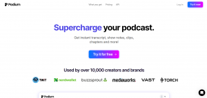 Podium es una herramienta de inteligencia artificial diseñada para ayudar a los podcasters a crear contenido rápidamente. Ofrece transcripción automática, creación de notas del programa, capítulos de episodios y clips destacados. Además, genera contenido promocional, como publicaciones de blogs y redes sociales, ahorrando tiempo y mejorando la accesibilidad para los creadores.